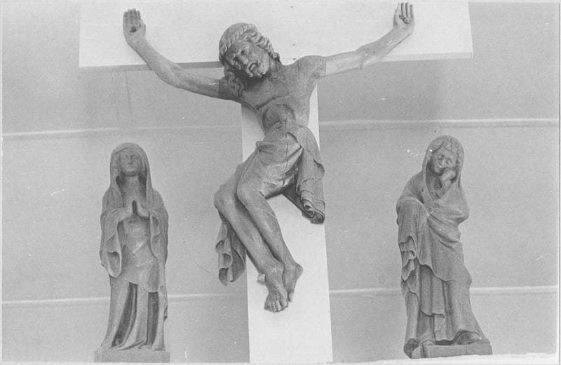 groupe sculpté : le Christ en croix entre la Vierge et saint Jean
