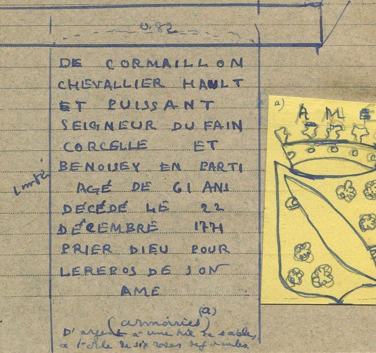 épitaphe (gravé) ;