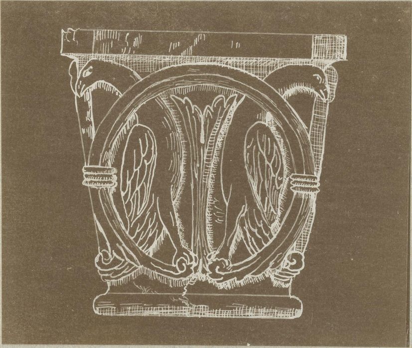 représentation animalière (oiseau) ; ornementation (rinceau)