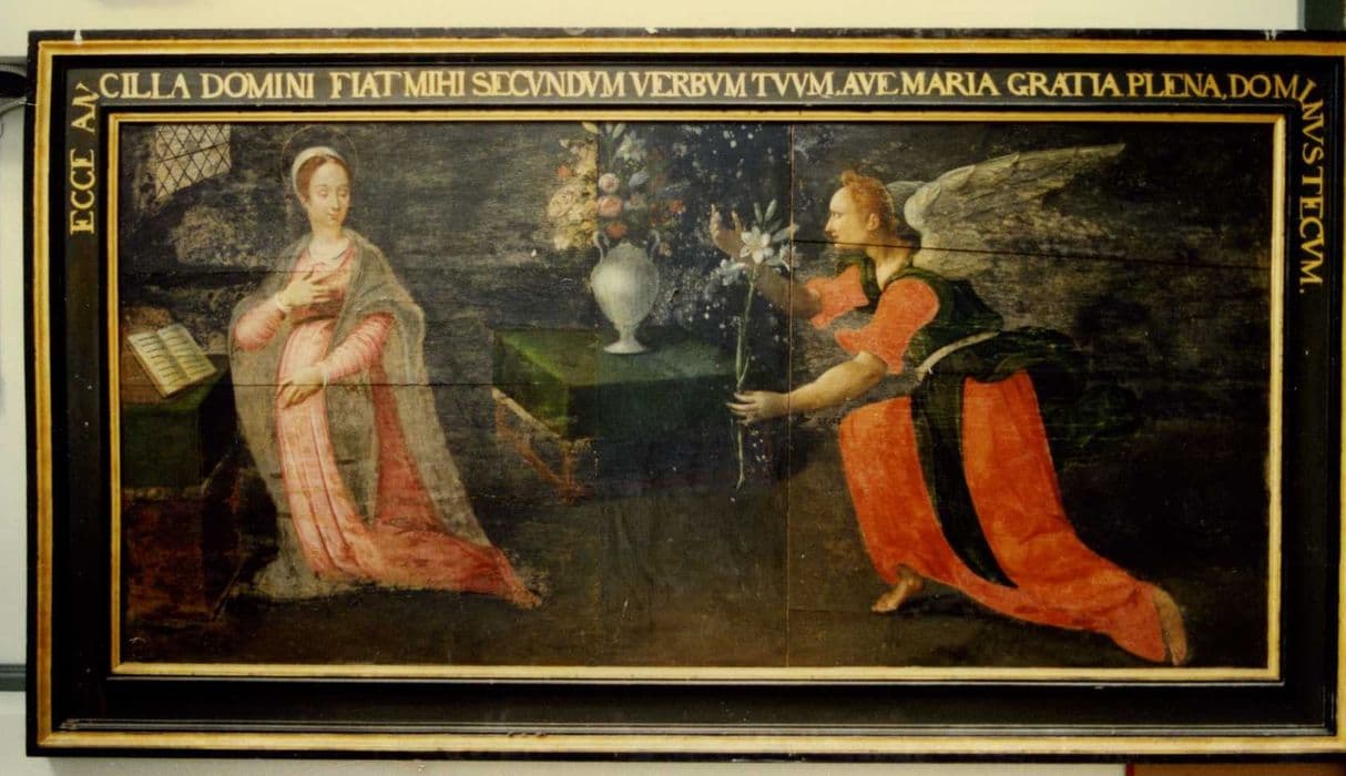 tableau (triptyque) : la Cène, le Martyre de saint Symphorien, les donateurs, l'Annonciation