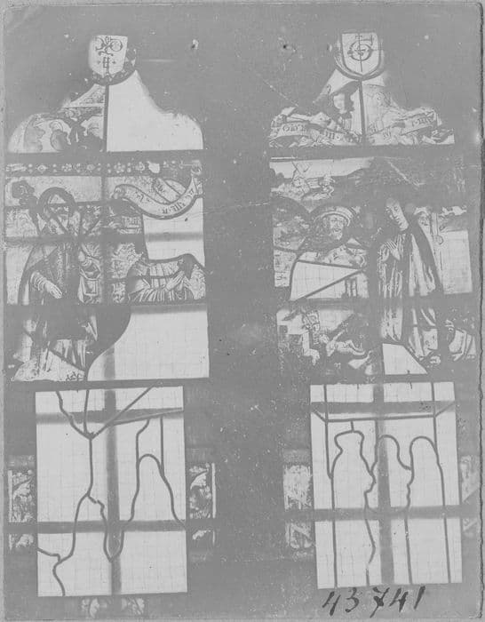 verre transparent (coloré) : grisaille sur verre, jaune d'argent ; plomb (réseau)