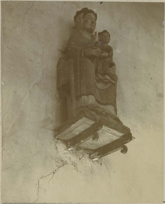 Cette statue est placée sur une console, au-dessus de la porte d'entrée, à l'intérieur.