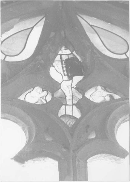 verre transparent (coloré) : grisaille sur verre, jaune d'argent ; plomb (réseau)