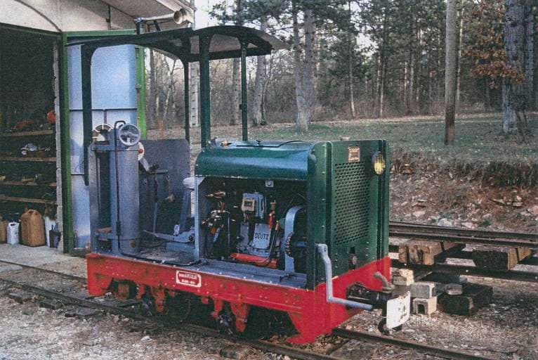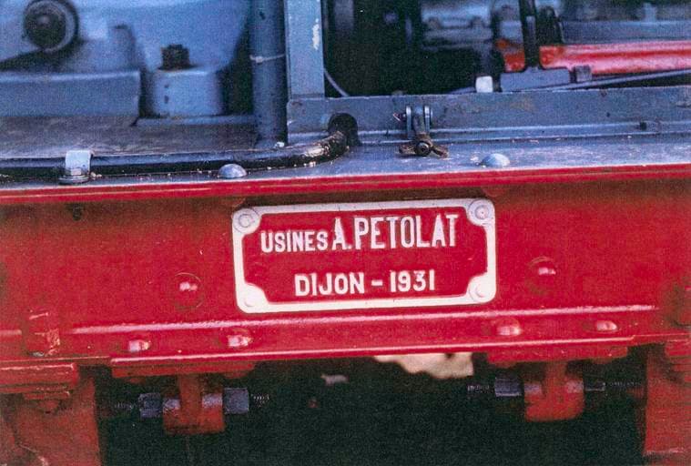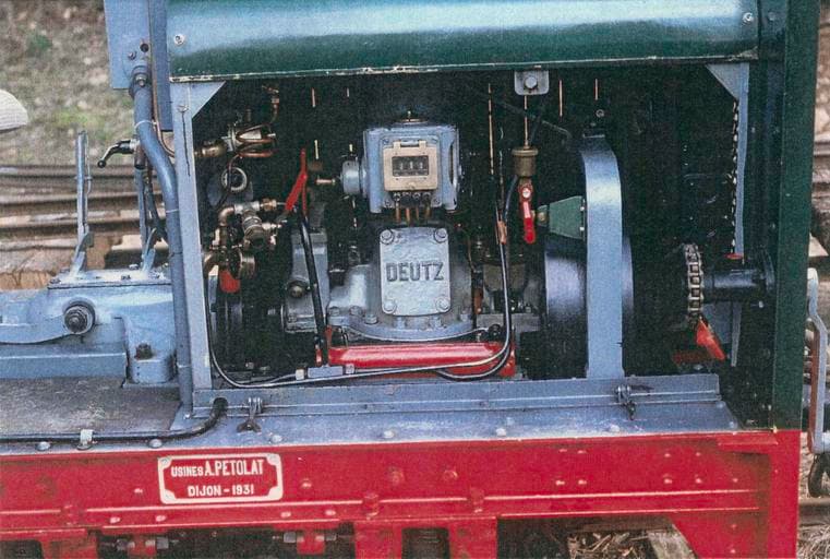 Locotracteur Pétolat 020 n° 1680 03 4.8.31, à moteur diesel à huile lourde, licence Deutz, d'une puissance de 8 à 9CV. Il peut circuler sur des voies de 0, 50 à 0, 75m.Moteur à un cylindre, vertical à deux temps ; démarrage à l'air comprimé.