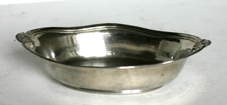 Bassin ovale à bord chantourné. Bâte et bordure rapportées ; décor fondu et ciselé.