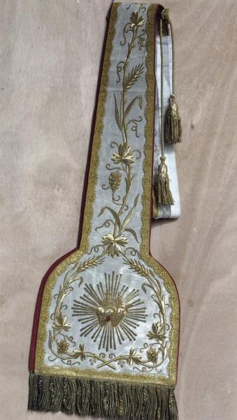 Etole en taffetas moiré avec filé argent, à décor brodé de filé or ; galon doré.