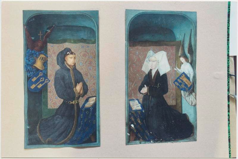 2 peintures (gouaches) : Nicolas Rolin et Guigone de Salins