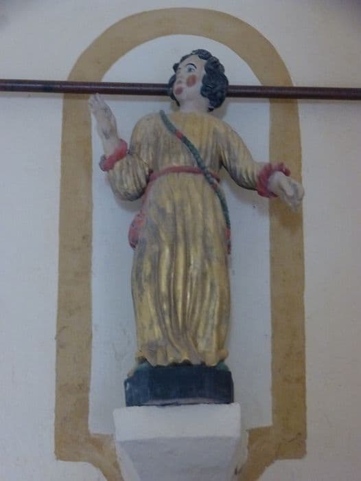 Doute sur le matériau : statue en bois (arrêté et fiche CAOA) ou en pierre (base CAOA).