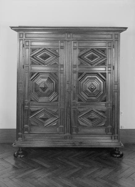 Armoire à deux battants ornée d'un motif de pointes de diamant.