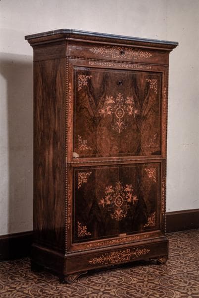ensemble constitué d'une chaise, d'une table de nuit, d'une commode, et d'un bas d'armoire-secrétaire à abattant n°GHD 0806, n°GHD 211-2, n°GHD 0359 et n°GHD 0358