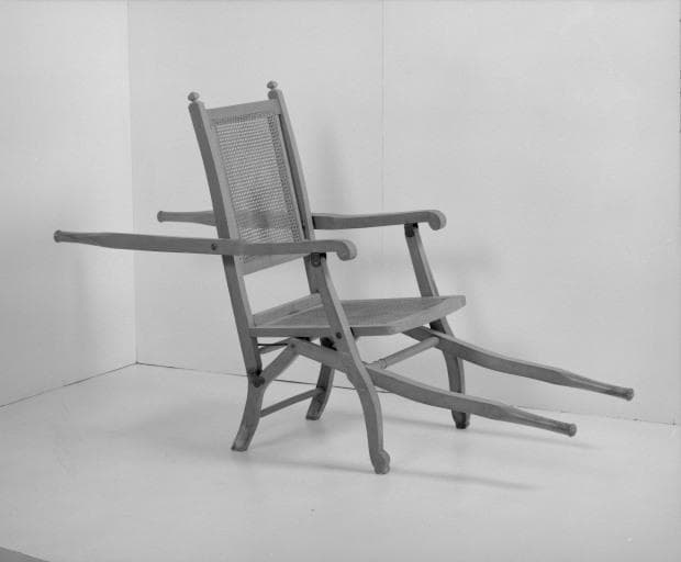 hêtre : taillé, chantourné ; jonc : cannage ; fer (garniture)
