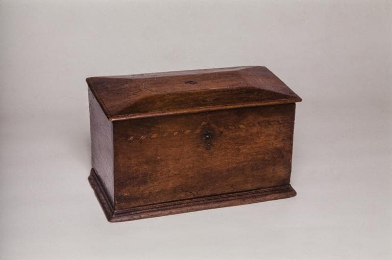noyer : taillé, incrustations ; fer (garniture) : forgé