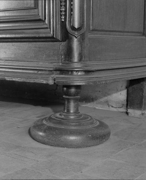 noyer : taillé, tourné, chantourné, cadre totalement mouluré, mouluré petit cadre, grand cadre élégi ; fer (garniture) : forgé