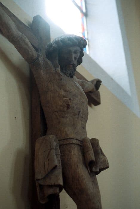 Crucifix présentant des traces de polychromie.