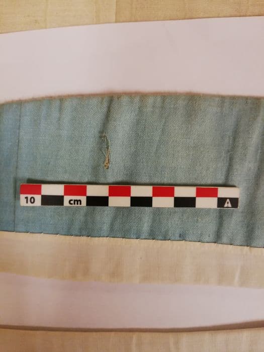 Dentelle et damas encrassés. Trou et taches dans la doublure.