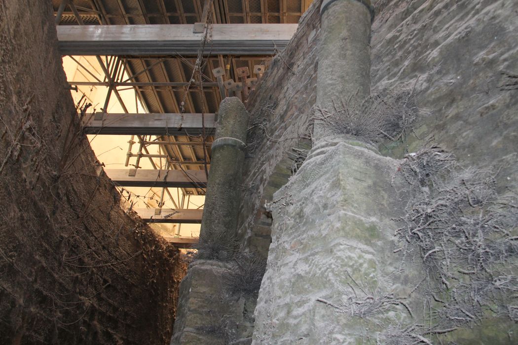 Contexte de découverte : travaux du XIXe siècle. Localisation originelle : sur le parement extérieur de la rotonde, en soutien de chapelles à encorbellement. Localisation actuelle : dans les sauts de loup autour de la rotonde. Projet de destination : conservées sur place.