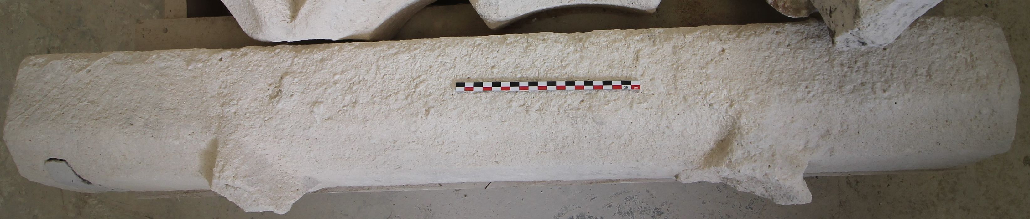Balustrade démontée au XXe siècle. Ce bloc est une base de balustrade avec deux arrachements correspondant à un trilobe. Il appartient, avec les autres éléments inventoriés LA-086 à LA-122 au système de balustrade à trilobes et demi-cercles qui couronnait les ailes est et ouest de la sacristie et encore partiellement visible sur la partie ouest. Elle a été démontée, probablement pour des raisons de sécurité, lors de la création des chéneaux en cuivre au XXe siècle (Archipat 2019 : 19, 37). Une partie a été conservée, certains éléments ont été retrouvés dans la cour de l'ENSA par l'agence Archipat, qui lest a photographiés et relevés en 2018 (Archipat 2019 : 37 et plan A502 EL).
