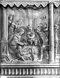 POP | Plateforme ouverte du patrimoineretable, groupe sculpté : l'Adoration des bergers, le Christ devant Pilate, le Portement de croix, la Crucifixion, la Mise au tombeau, la Résurrection, l'Assomption, l'Arbre de Jessé