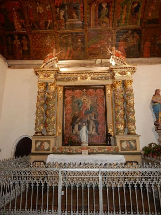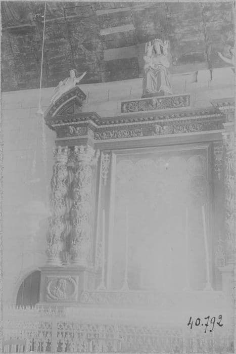 Retable dont les colonnes torses très ouvragées supportent un couronnement.