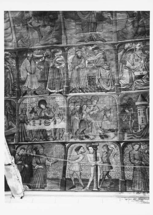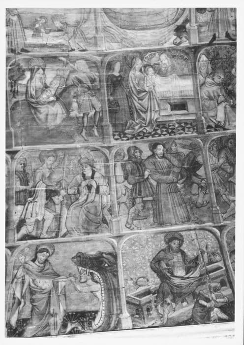 36 peintures monumentales : légende de sainte Marguerite, légende de saint Fiacre