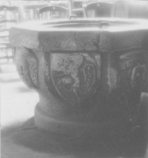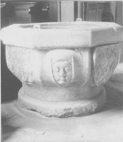 Cuve octogonale ornée de quatre masques et de quatre écus.