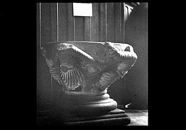 Cuve ronde posée sur une base moulurée rectangulaire et ornée de quatre personnages.