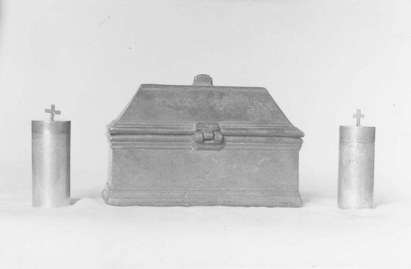 POP | Plateforme ouverte du patrimoinecoffret aux saintes huiles, 2 ampoules aux saintes huiles, ampoule à saint chrême