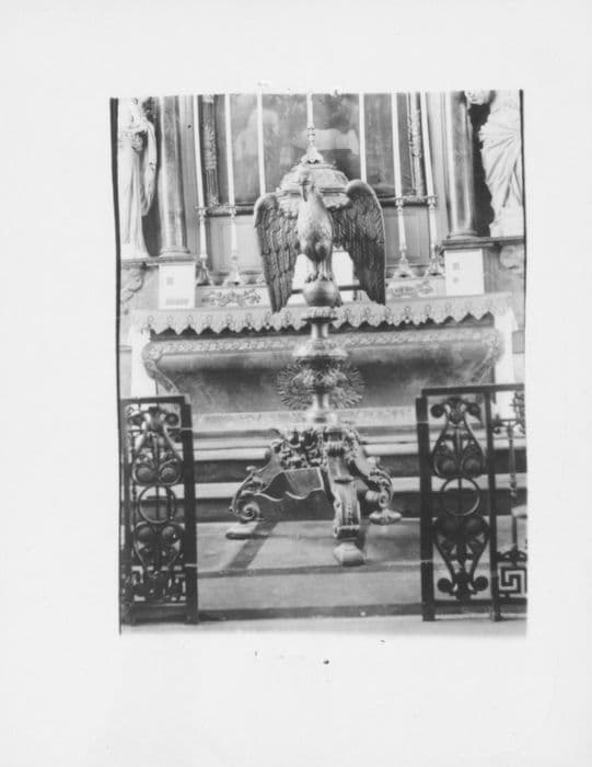 Lutrin se composant d'un aigle sur un pied formé d'un vase reposant sur trois consoles.