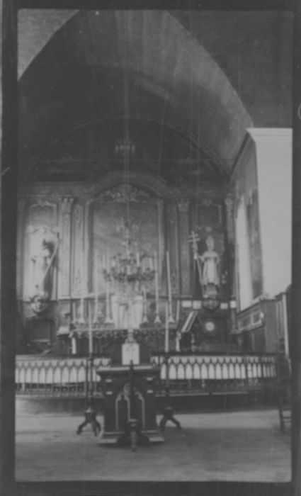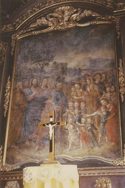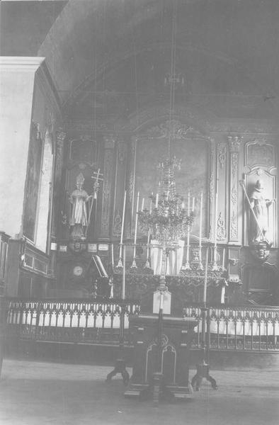 autel, gradins d'autel, retable, tableau : laissez venir à moi les petits enfants, 2 statues : saint Loup, saint Gilles (maître-autel)