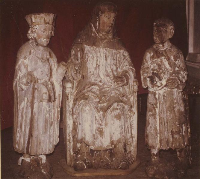 h = 135 (Dimension de l'une des statues) ; Dimension d'une autre statue : h = 125. Dimension de la troisième statue : h = 120