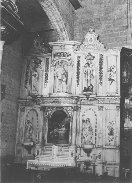 POP | Plateforme ouverte du patrimoineautel, gradins d'autel, tabernacle, retable, 5 statues : sainte Elisabeth, sainte Anne enseignant la Vierge, saint Michel, Vierge à l'Enfant, saint Joseph, tableau : la Naissance de la Vierge