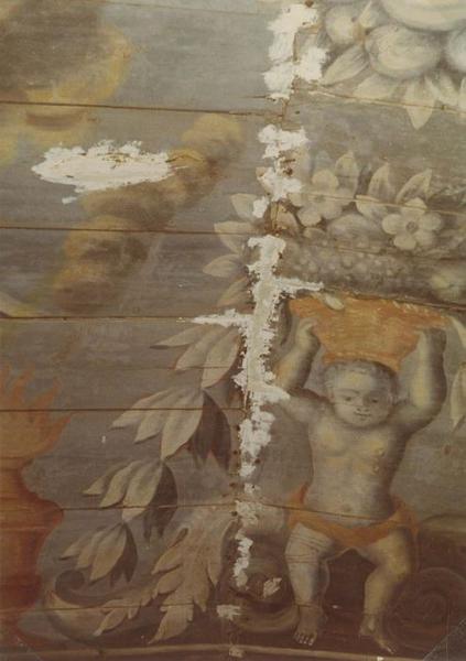 inscription : F. faire par V. et D.M. Yves Le Berre, Grand V. de Quimper et Rr de Mur, H.h. Marque Moignot, fabrique, l'an 1728 (dans la nef, paroi gauche). Mr Le Roux recteur M. Callary M. Louis Cheny tresorier Antoin Tanguy fabricien, l'an 1878 (au pied de la nef, à gauche). inscription : Peint par Roch f. Delaporte 1723 (sur la paroi de droite). inscription : Restauré par Lange, l'an 1878 (sur la paroi de droite).