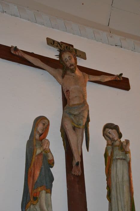 groupe sculpté : Christ en croix entre la Vierge et saint Jean (le)