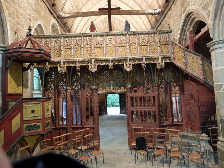 Jubé composé d'une clôture ajourée en cinq travées, supportant par encorbellement, une tribune. Un petit escalier à vis, avec sa porte primitive, donne accès à cette tribune.