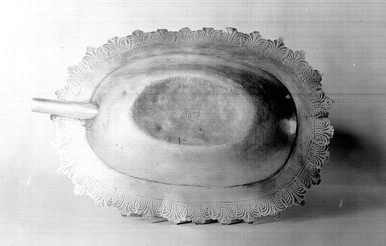 inscription : PAR GONNERI LE PAPE GOUVERNEUR A ST GONNERY 1651 (sous face). Poinçon de communauté : C couronné (sous face). Poinçon de maître : initiales RC (sous face).