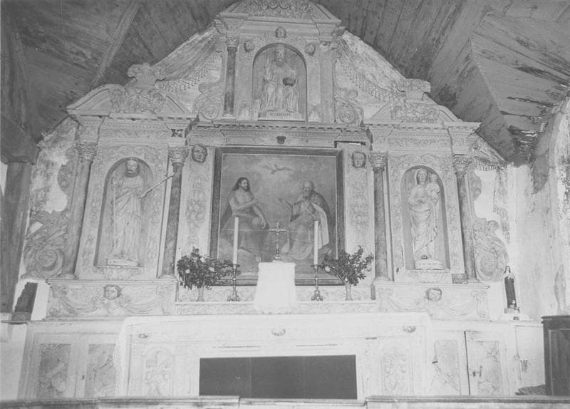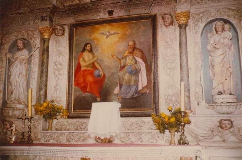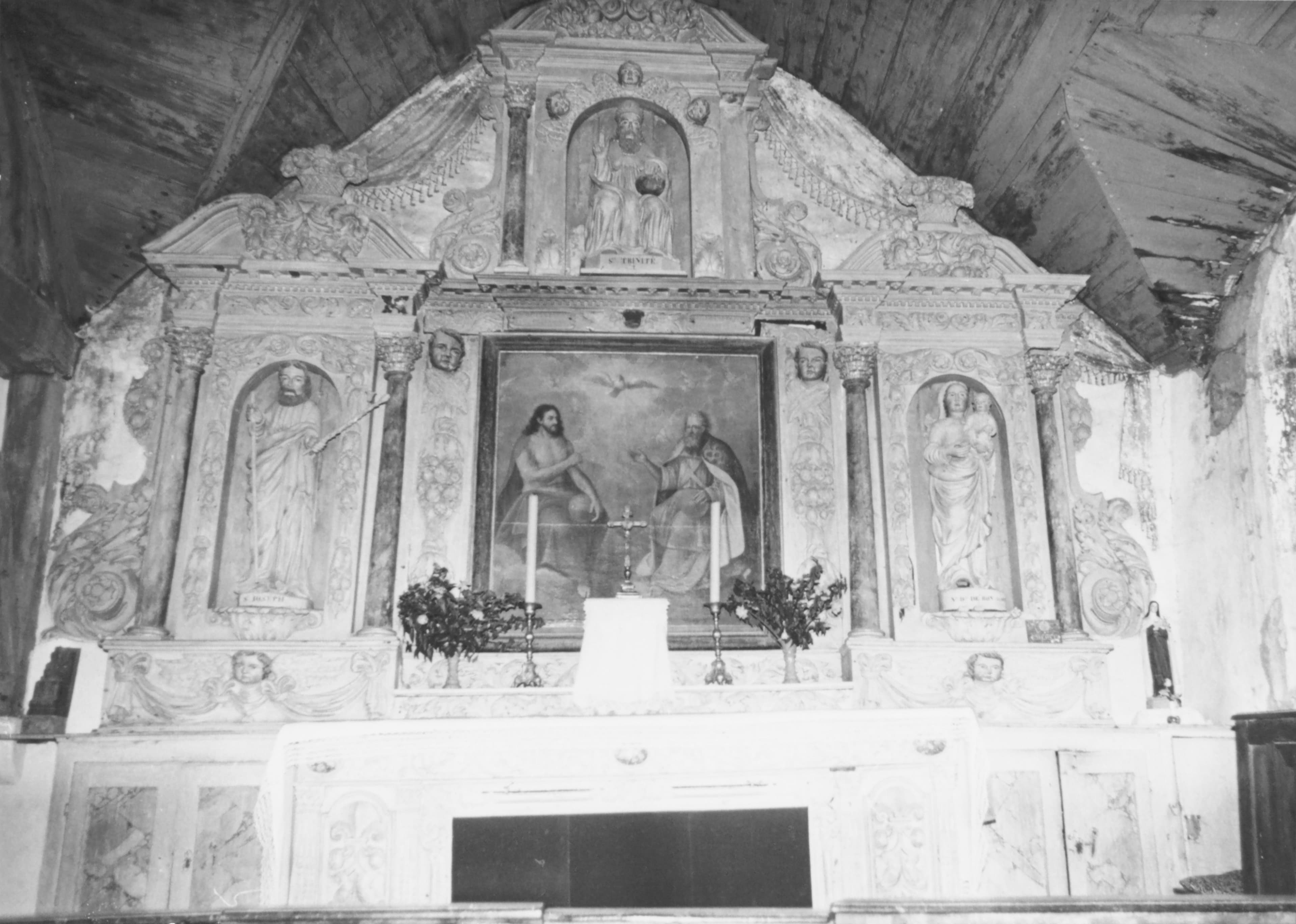 POP | Plateforme ouverte du patrimoineautel, gradins d'autel, retable, tableau : sainte Trinité (la), 3 statues : Vierge à l'Enfant, saint Joseph, Dieu le père