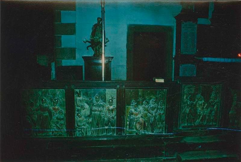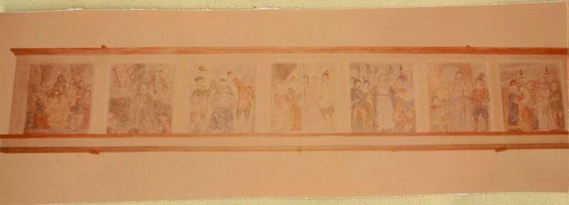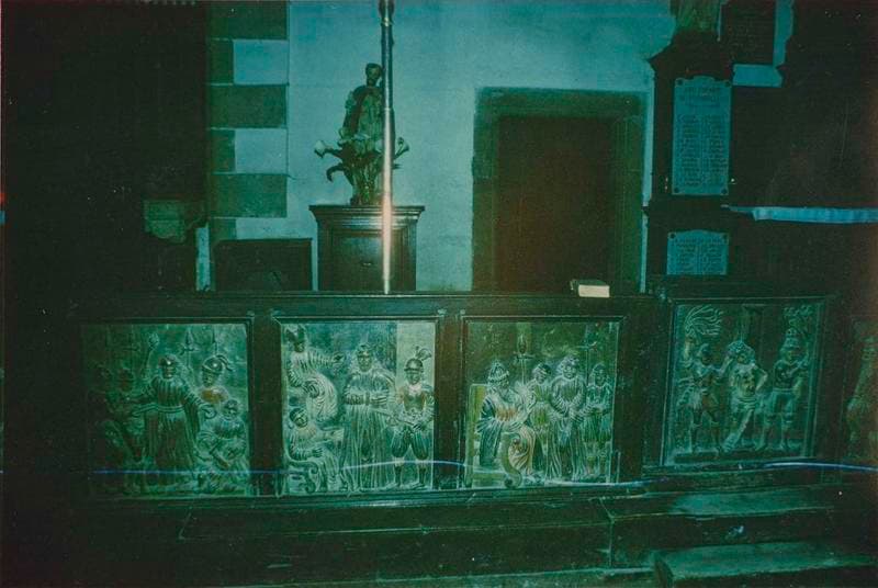 clôture de choeur : la Cène, Jésus au Jardin des oliviers, arrestation (l'), Jésus devant Anne, Jésus bafoué, Jésus devant Caïphe, Jésus devant Pilate, la Flagellation et le Couronnement d'épines, Ecce Homo, Jésus tombant sous la croix, la Crucifixion, la Résurrection