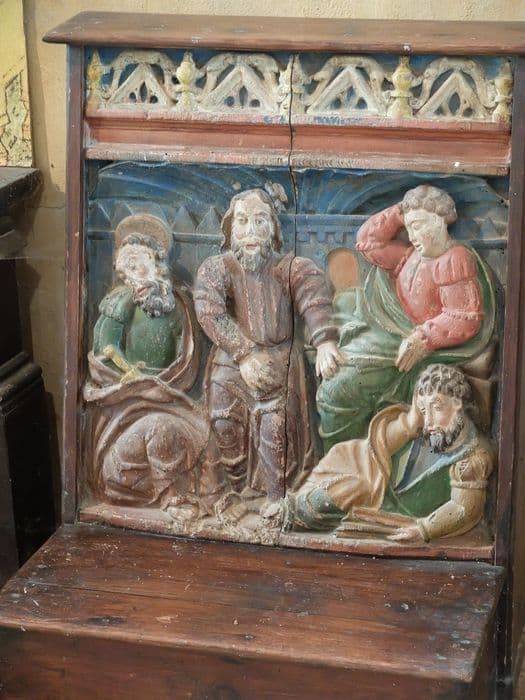 4 bas-reliefs : le Christ devant Pilate, la Cène, le Baiser de Judas, le Christ au Jardin des oliviers