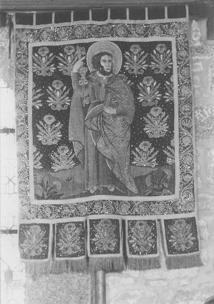 POP | Plateforme ouverte du patrimoinebannière de procession : Christ en croix entre la Vierge et saint Jean, saint Pierre