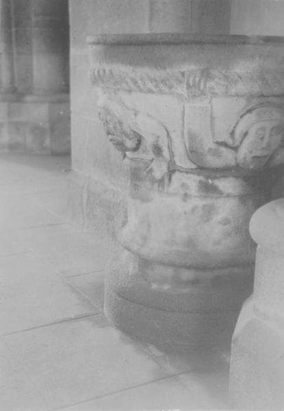 La cuve est décorée d'une torsade et de têtes accompagnées de bras alternativement le vés ou baissés.