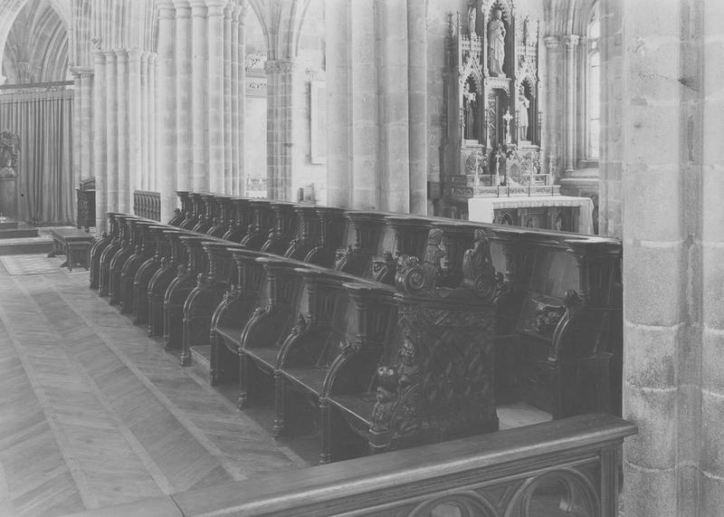 Stalles (46) composées de deux groupes se faisant vis-à-vis : 11 stalles basses et 12 stalles hautes.
