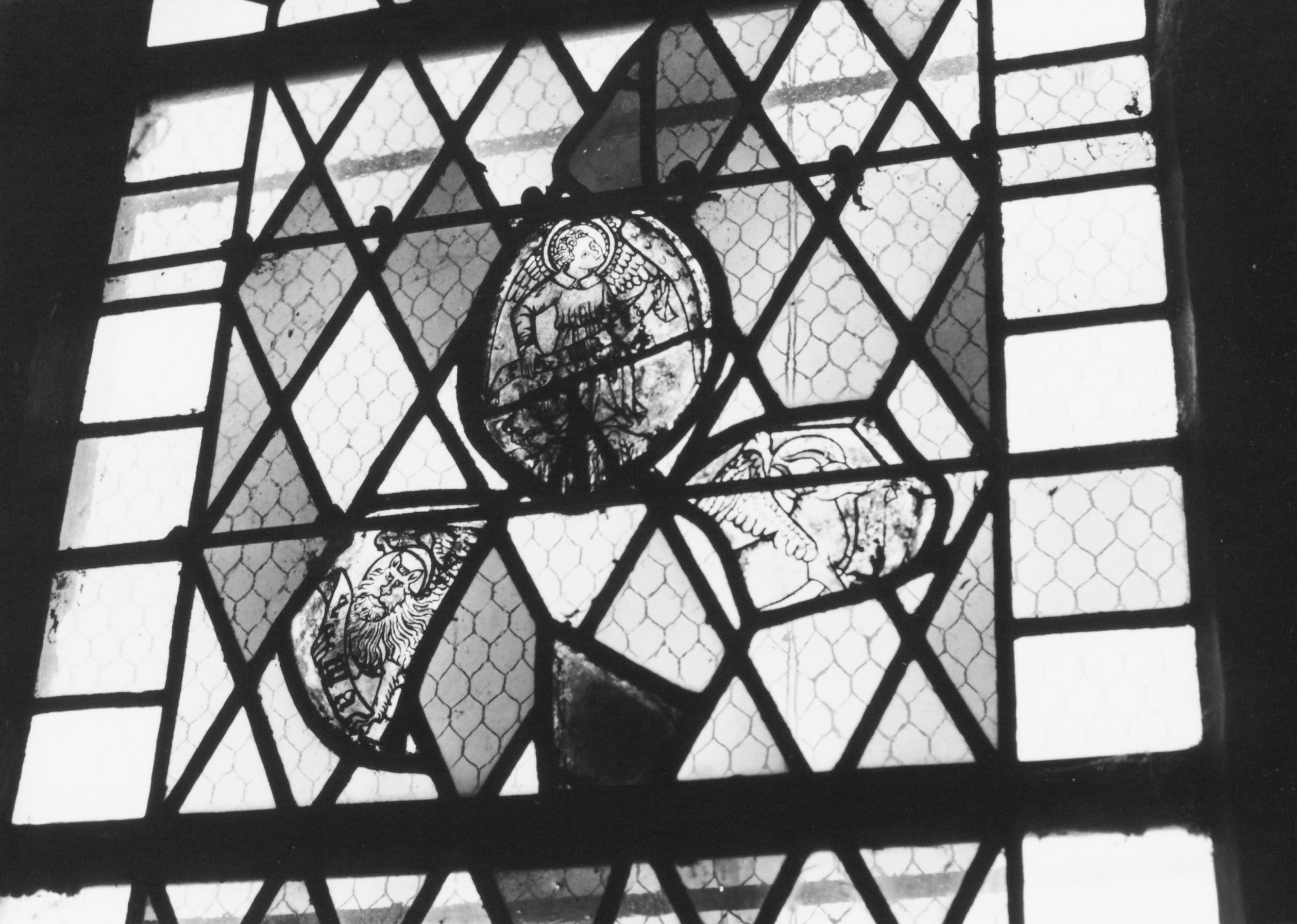 POP | Plateforme ouverte du patrimoine3 verrières : symbole de saint Mathieu, symbole de saint Luc, symbole de saint Marc