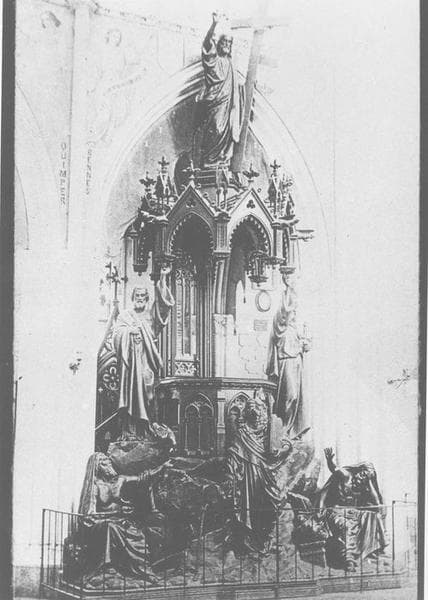 POP | Plateforme ouverte du patrimoinechaire à prêcher, 6 statues : Moïse descend de la montagne avec les tables de la loi, Elie reçoit d'un corbeau le pain qui le nourrit, Jérémie est assis sur les ruines de Jérusalem et du temple, saint Pierre, saint Paul, Jésus debout tient la croix