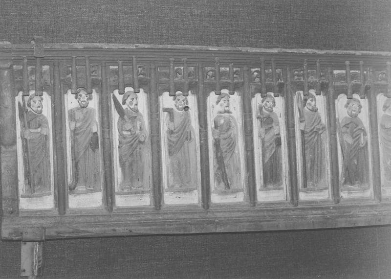 Les apôtres sont dans des niches séparées par des fuseaux et surmontées par des dais.