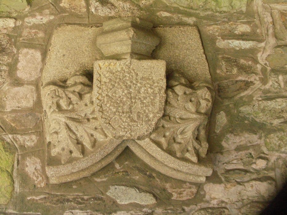 Fragment d'arc brisé sommé d'un écu.