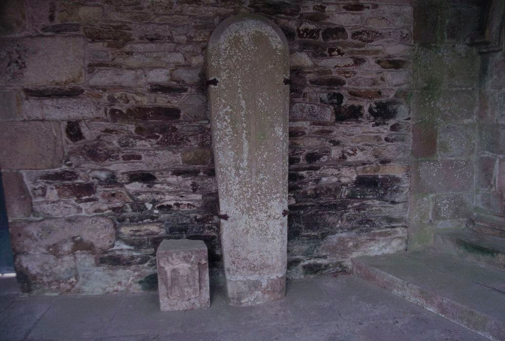 Pierre tombale de forme trapézoïdale.
