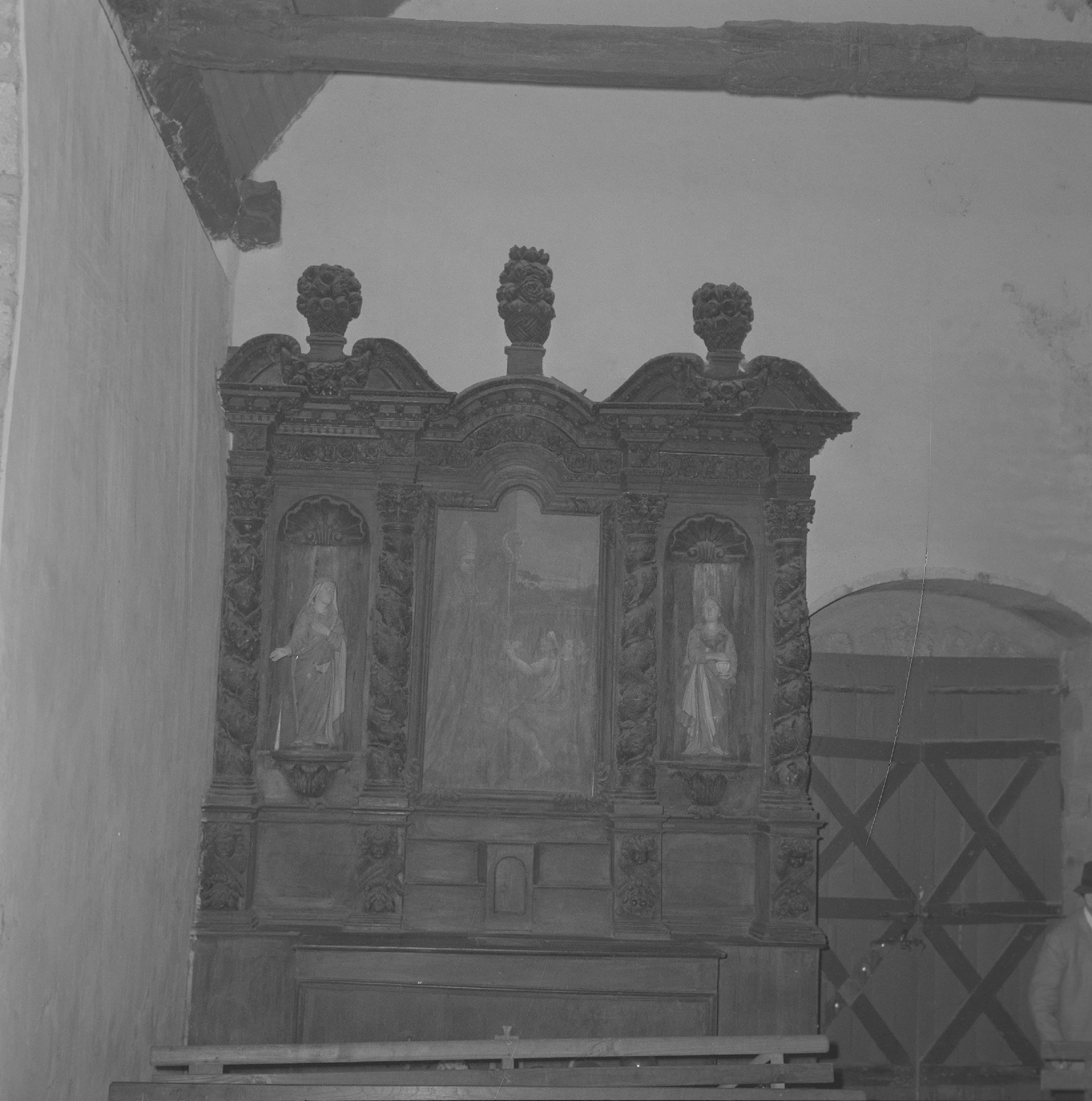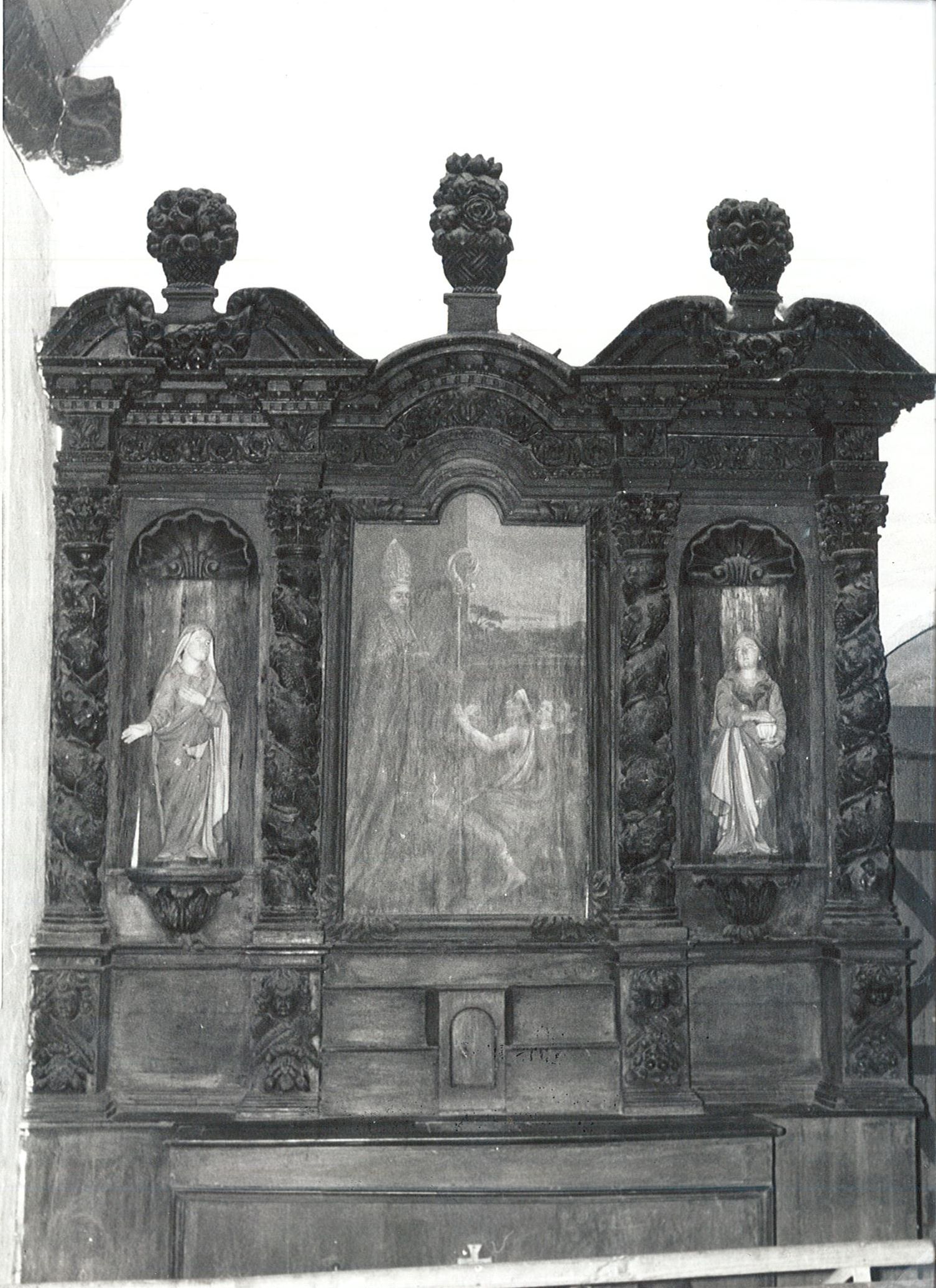 colonne torse ; pampre ; coquille ; bouquet ; angelot : tête ; sainte Madeleine ; Vierge
