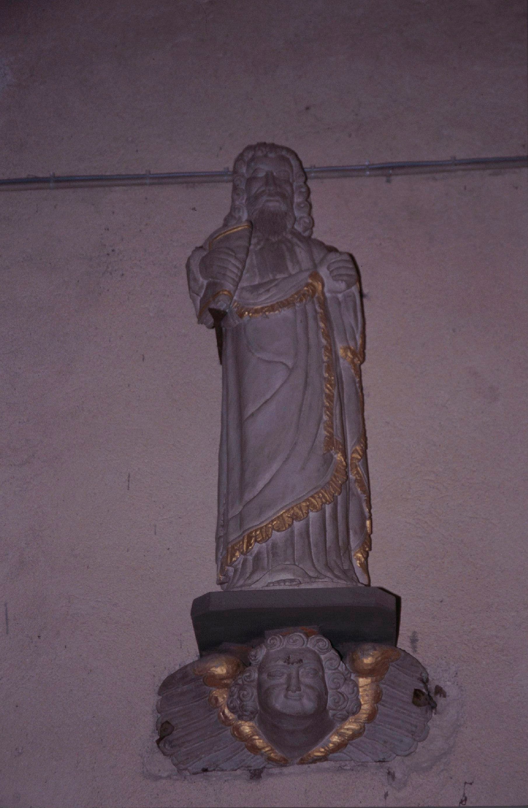 bois : taillé, peint (polychrome), doré