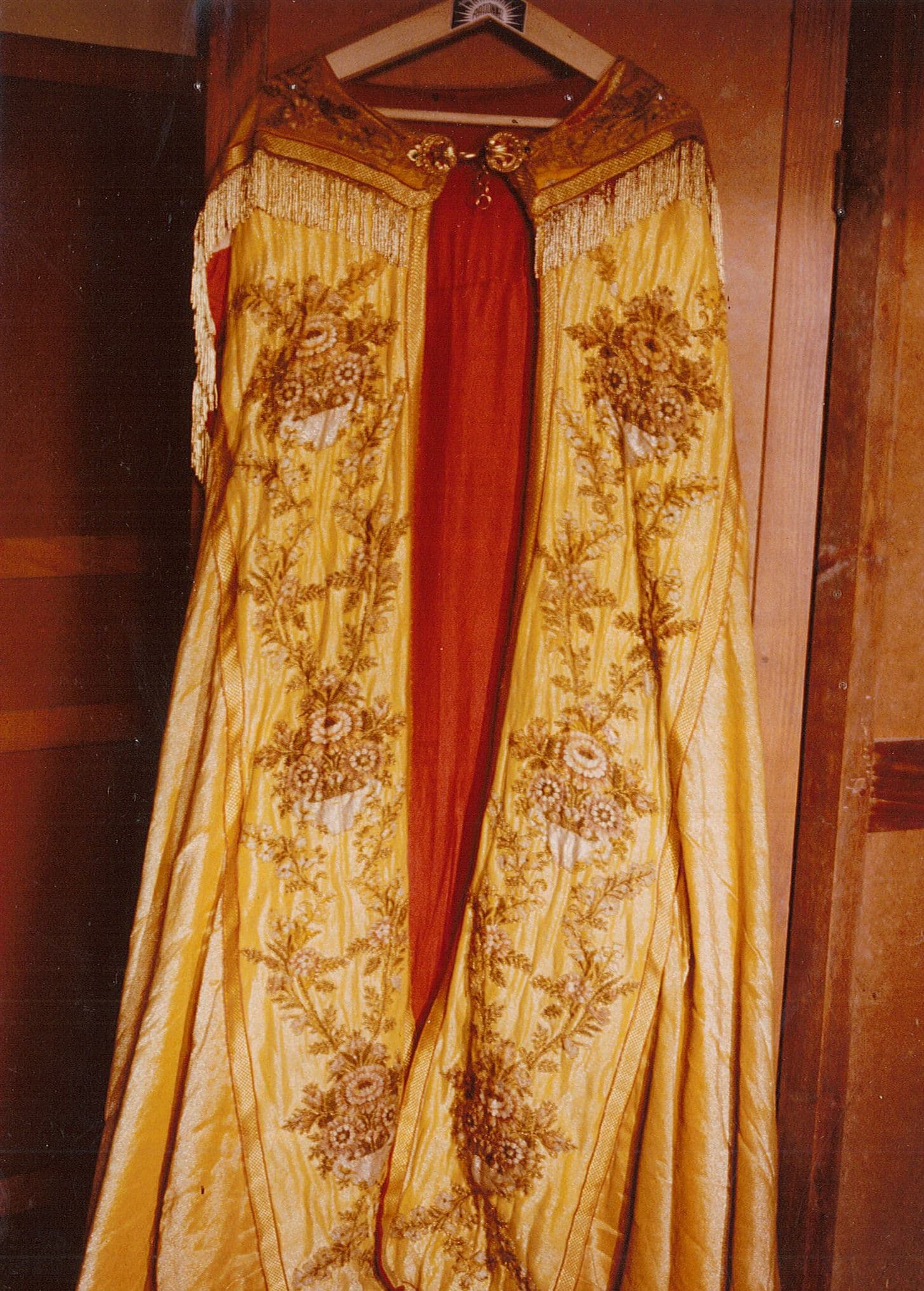 soie (jaune) : brodé, fil métal (or), soie