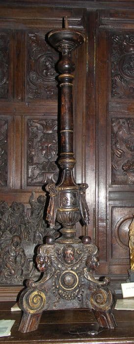 Sert de support au cierge Pascal. Traces de polychromie sous-jacente.
